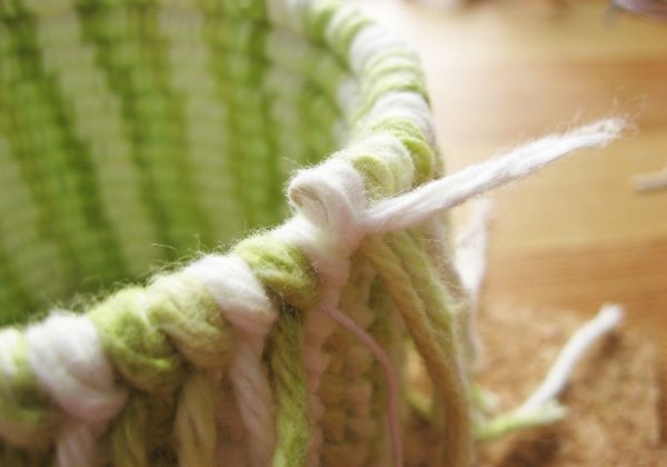 Logo após, termine de puxar a cordinha, para fechar o fundo da sua cesta.