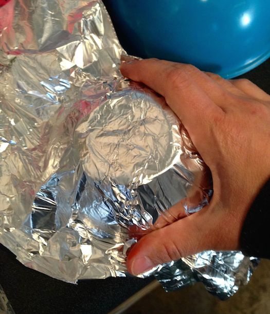 Encape o fundo do recipiente escolhido para ser o molde de sua cesta, com papel-alumínio ou com papel filme, de acordo com a sua preferência ou de acordo com o material que já possuir em casa.
