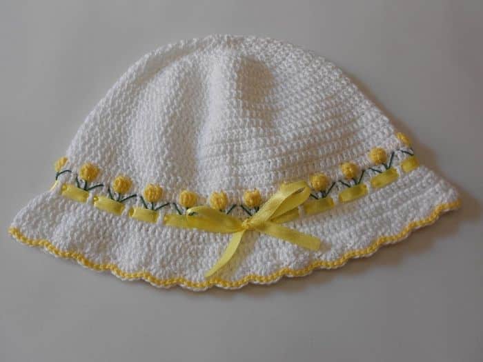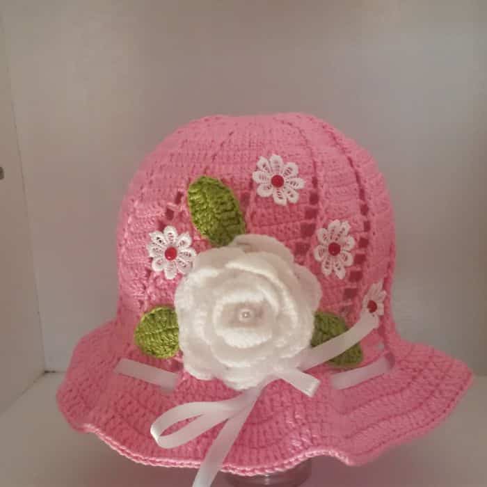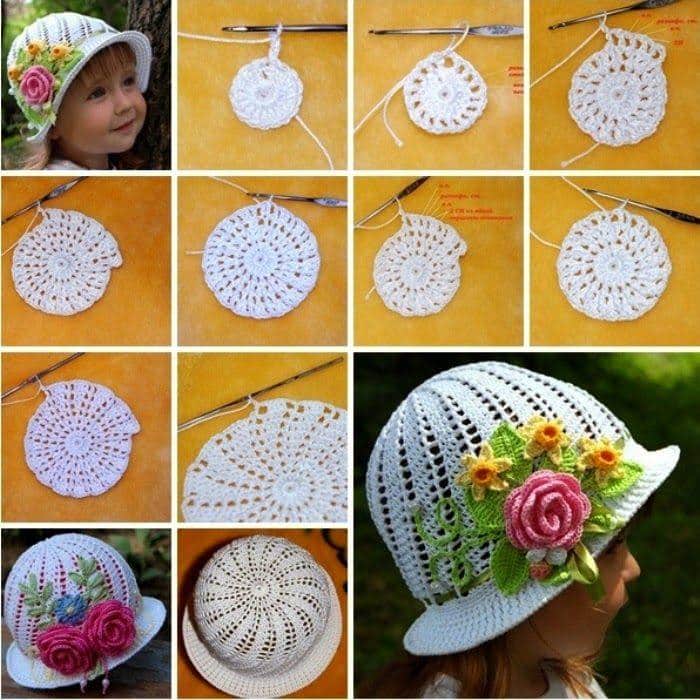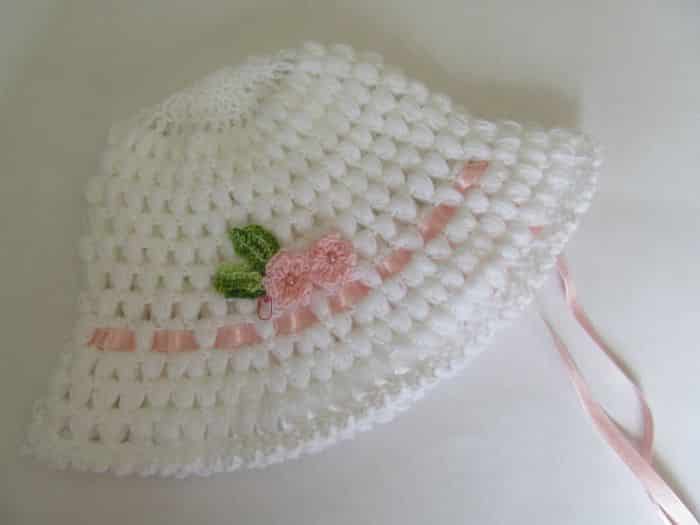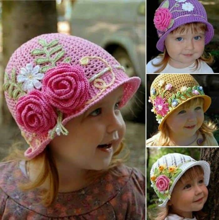 Este chapeuzinho infantil de crochê é muito fácil de ser feito e aba pode ter o tamanho desejado. Você pode fazer este modelo com os pontos desejados, até mesmo com somente com pontos altos ou somente com pontos baixos. Se não sabe fazer flor de crochê também não precisa acrescentá-las.