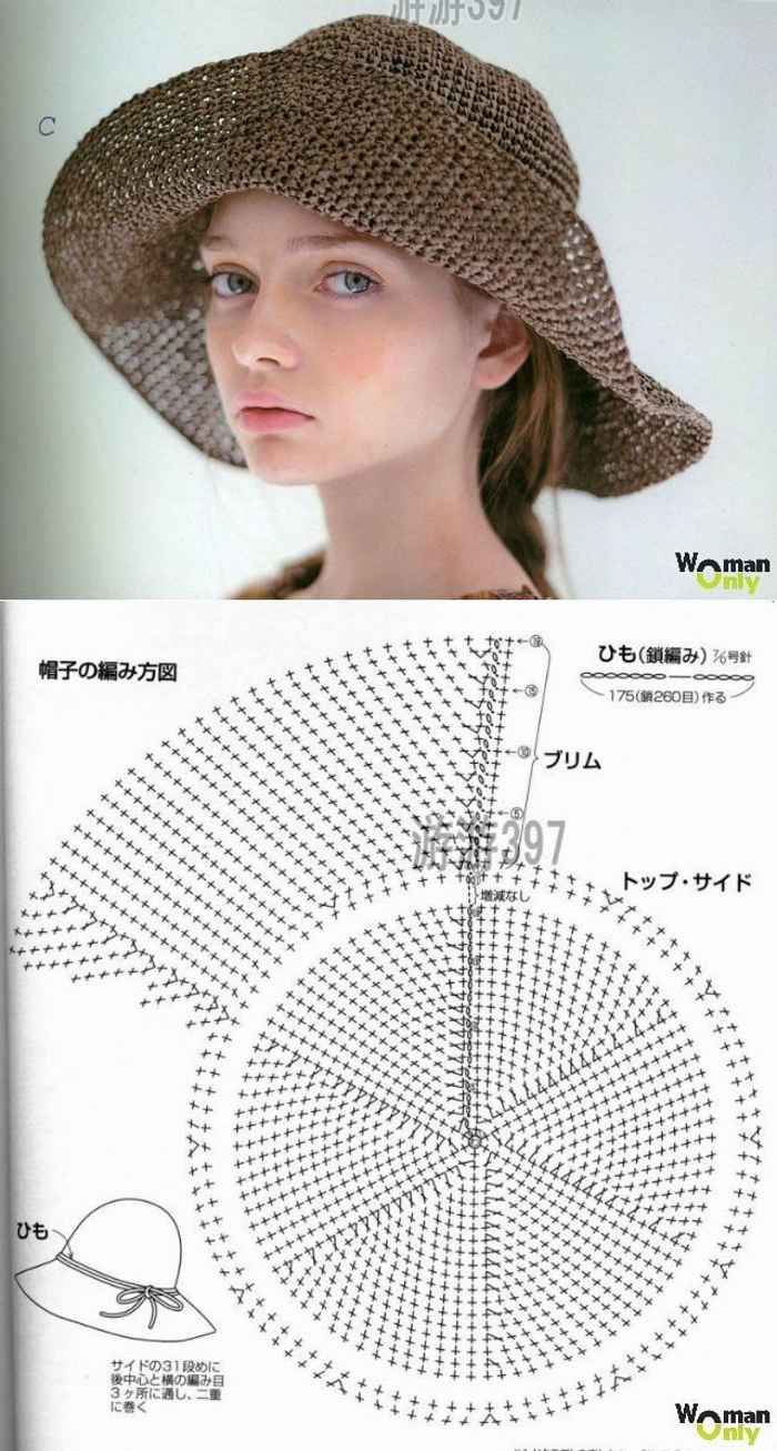 Para a praia o seu chapéu de crochê pode ter aba maior, se quiser. Siga o gráfico, e faça o mesmo esquema já mencionado.