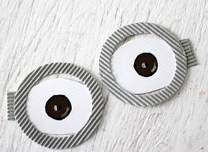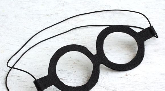 Em seguida, para finalizar a sua peça, transfira o molde dos óculos para o feltro preto, recorte e prenda o elástico. E está pronto!