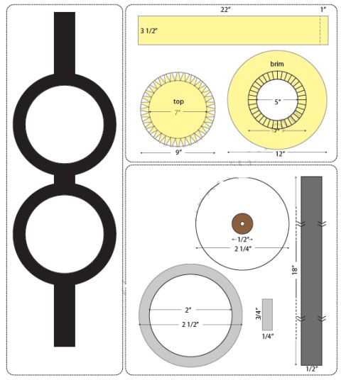 Agora, corte os excessos das lãs. E faça um traço com tinta preta na aba do chapéu.