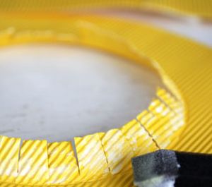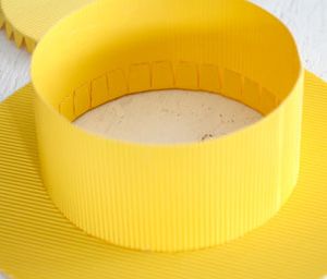 Em seguida, faça piques na parte de dentro da aba do chapéu, dobre e aplique cola branca comum, com o auxílio do pincel com esponja.