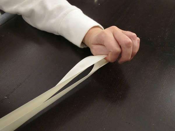 Logo após, meça em seu corpo o tamanho necessário para a fita de cetim larga se transformar em um cinto.