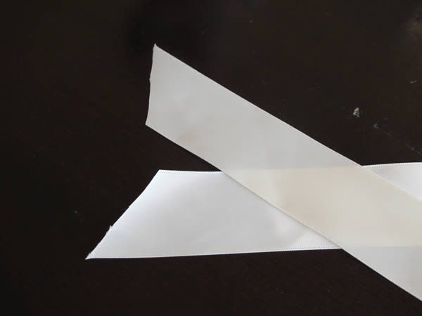 Em seguida, cole a peça de feltro no meio da fita de cetim larga.
