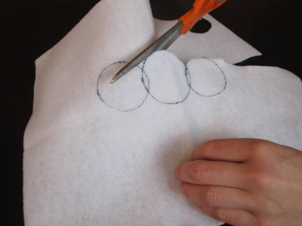 Em seguida, faça três círculos entrelaçado no feltro escolhido.