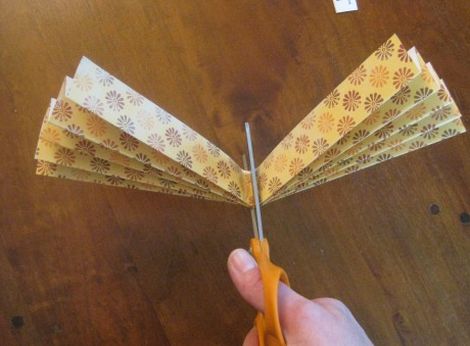 Comece dobrando 3 folhas de papel em estilo de leque, caso você queira fazer uma roda grande. E dobre cada parte do leque, cada folha de papel, ao meio.