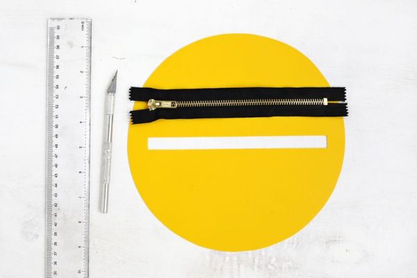 Em seguida, meça o tamanho do zíper e corte o espaço onde ele irá ficar posicionado em uma das partes de sua bolsa.