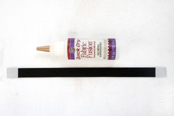 Agora, corte duas tiras no tecido preto e cole uma tira na outra, com os lados do direito para fora.