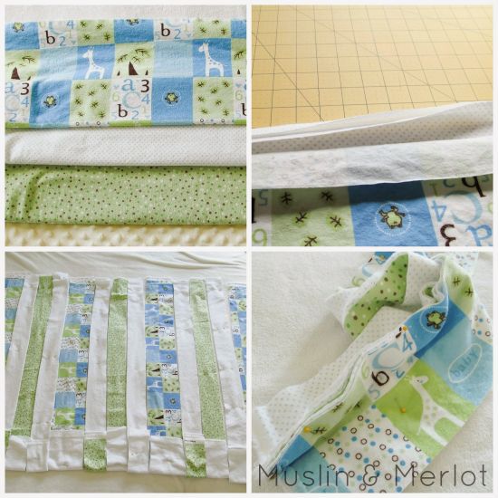 Créditos:http://muslinandmerlot.blogspot.com.br/2014/05/striped-rag-quilt-tutorial.html.