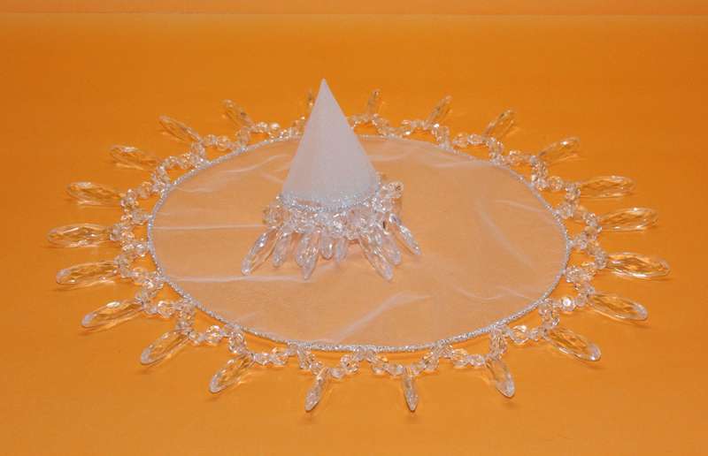 Para finalizar a sua peça, costure os fuxicos na borda do círculo de organza e costure uma pedraria no meio da peça, para ser o puxador. E está pronto!