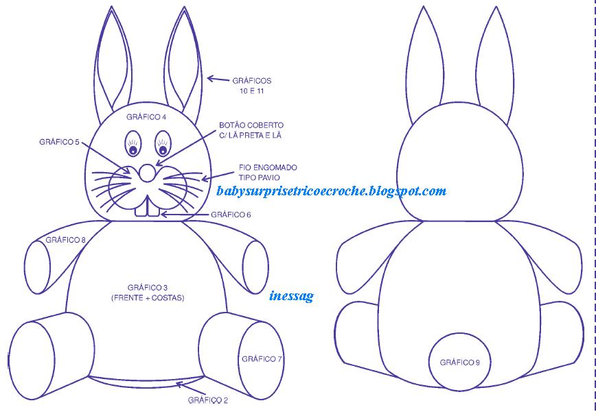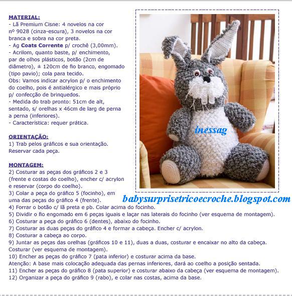 Esse é o gráfico do coelhinho de crochê. Quem tiver dificuldade para abrir, pode aproveitar para ver no endereço: http://1.bp.blogspot.com/_hI7QFaqugIw/Sz-yQRl6LhI/AAAAAAAALxQ/3y3SNhiBVR0/s1600-h/Coelho+Pelucia+de+Croche+-+Gr.+Rec.+Pink+Rose.JPG.