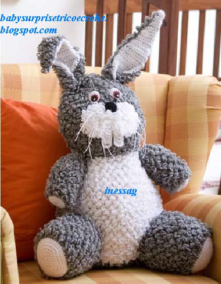 Essa é outra sugestão bem interessante e pode ser elaborada com uma lã diferente para ter um resultado mais legal e bonito. Faça o coelho nas cores que desejar.