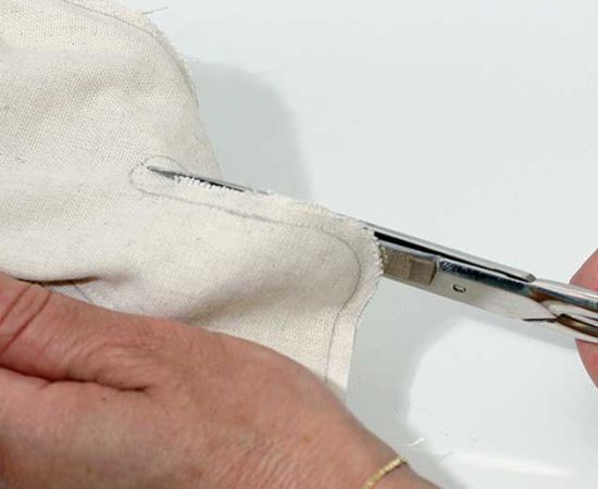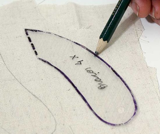 Em seguida, desenhe os braços no tecido de algodão cru. Recorte com a tesoura, deixando uma margem.