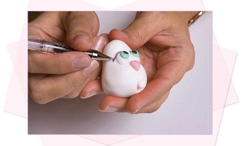 11. Faça duas bolas na cor branca para os olhos e cole o rosto.