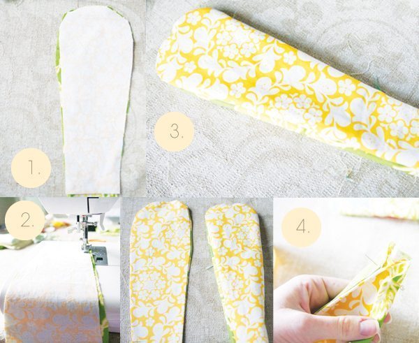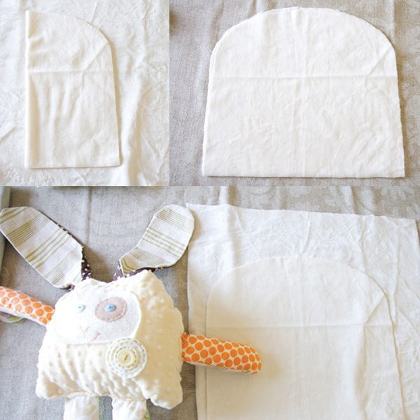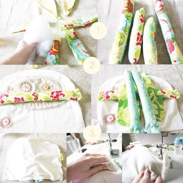 Em seguida, fixe a entretela nas orelhas e costure-as.