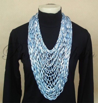 Qual mulher não gosta de um belo acessório? O colar na cor azul e branco é lindo e combina bem com uma roupa na cor preta! Faça agora mesmo o seu colar !