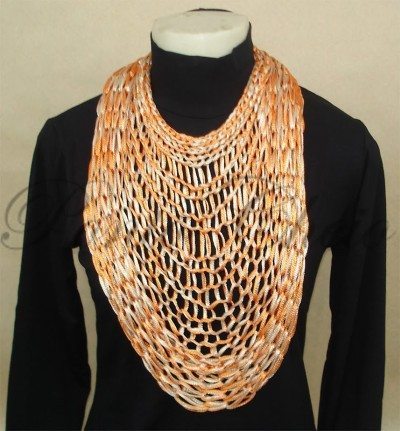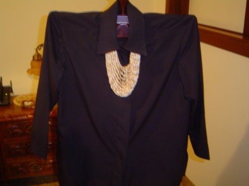 Olha que lindo esse colar sendo usado em uma blusa! Imagina também fazer um colar na cor preta e usar com uma camisa social branca?