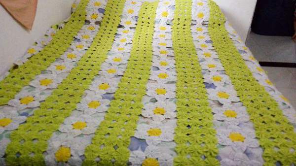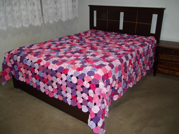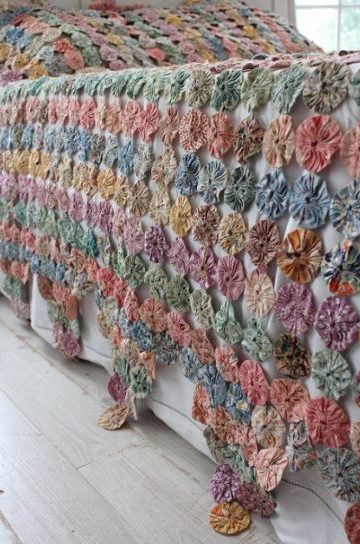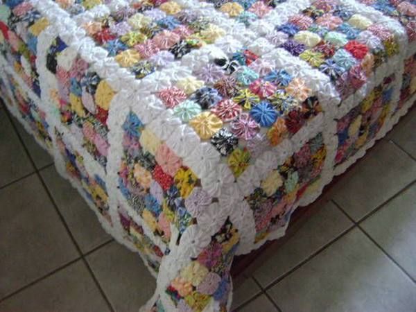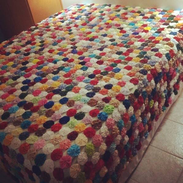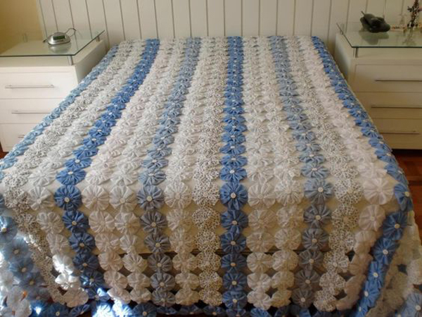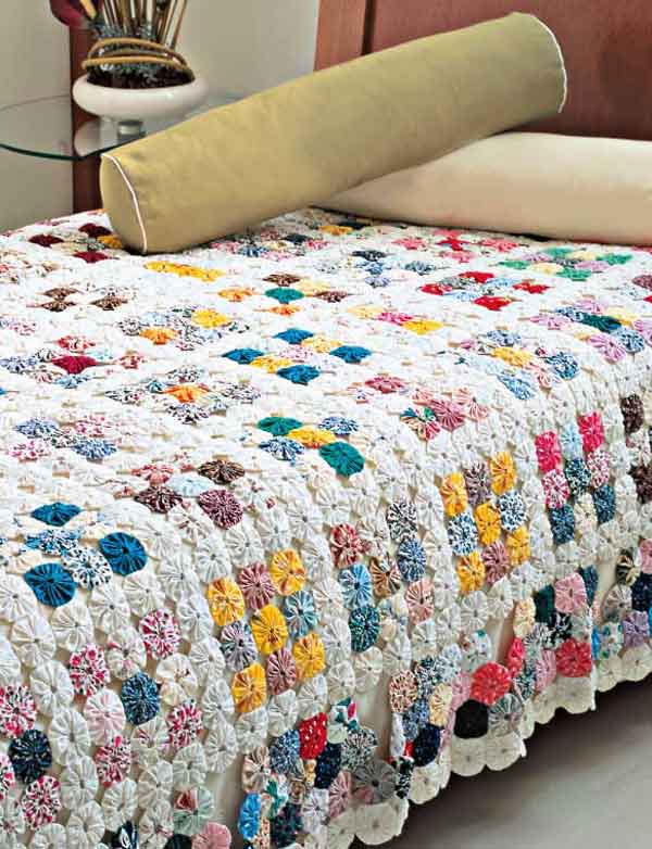 Veja mais modelos de colchas. Lembrando que você pode tanto fazer uma colcha de fuxico grande quanto fazer uma colcha de fuxico pequena, até mesmo para usar no berço da sua criança.