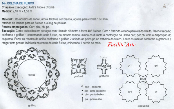 Em cada fuxico faça o crochê do gráfico a seguir.
