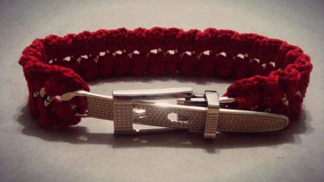 Prenda o cordão na fivela ou em uma das partes do fecho. Se for necessário, queime as pontas do cordão, para não desfiar, se for um cordão de nylon. Vá trançando estes pedaços de cordão da maneira que quiser, podendo até mesmo fazer um trançado comum, como se fosse uma trança de cabelo, por exemplo. Para finalizar a sua peça, basta fixar a outra parte do fecho na outra ponta da coleira. E está pronto!