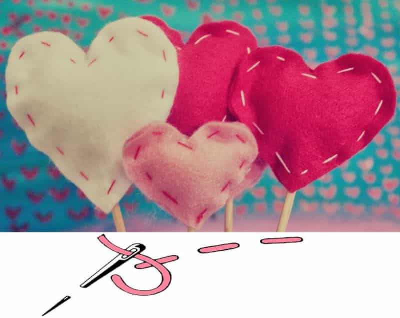 O ponto alinhavo é o ponto mais fácil de ser feito, pois basta você passar a linha por cima e por baixo do feltro que você já consegue juntar as duas partes. Mas lembrando de que este ponto não é tão firme quanto o ponto pesponto nem o ponto alinhavo, por isso é indicado apenas para as peças que não serão manuseadas com frequência nem entrarão em atrito.