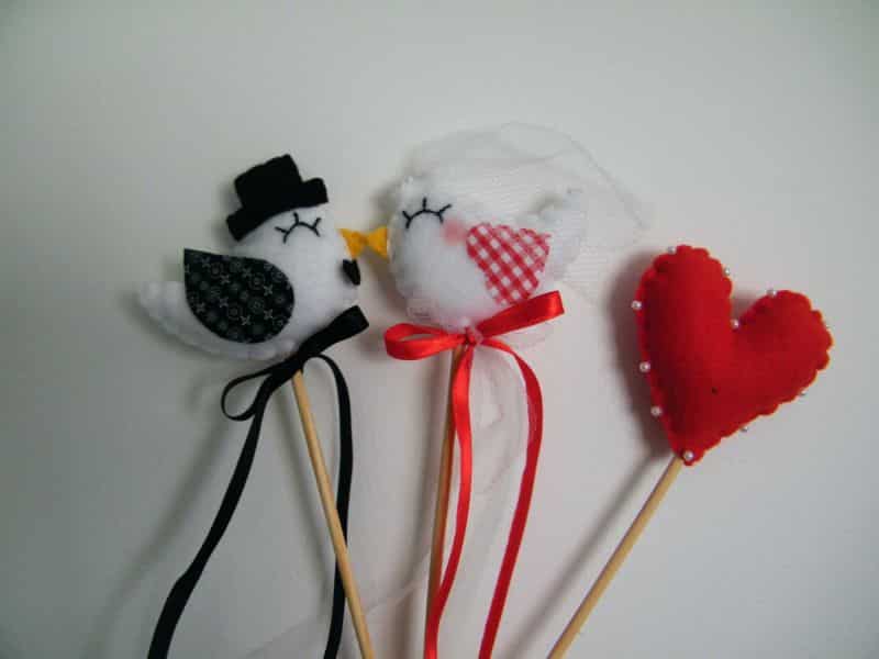 A sua vida nunca mais será a mesma após você começar a trabalhar com feltro, pois este é um material muito interessante e versátil, que pode ir parar até no topo do bolo de seu casamento, caso você faça fofíssimos noivinhos para este fim, que pode ter os mais diversos modelos e estilos. Para rechear os seus artesanatos de feltro você também pode usar o enchimento que preferir, como manta acrílica, plumante ou até algodão, caso precise improvisar.