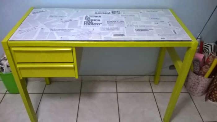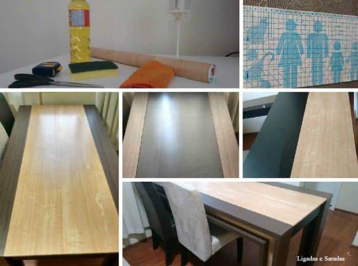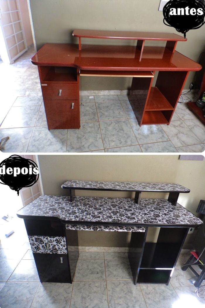 Veja como com um simples papel contact é possível renovar as suas mesas, até a sua mesa do computador.