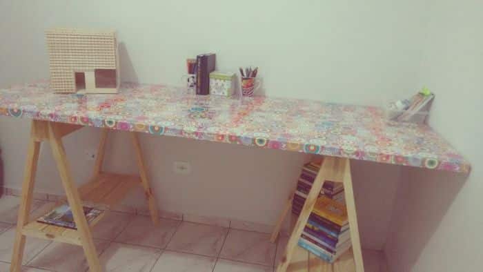 O papel contact em sua mesa ou, qualquer outro móvel, pode apenas ser um detalhe, com você fixando uma tira de papel contact no meio da mesa.