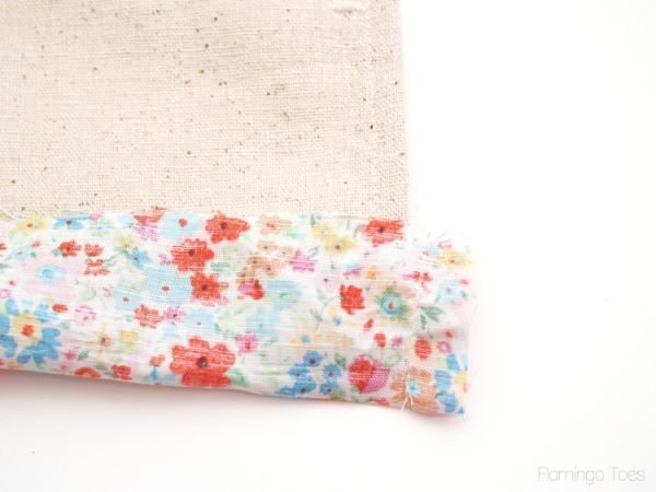 Em seguida, vire a outra extremidade da tira de tecido para cima, e costure nas laterais.