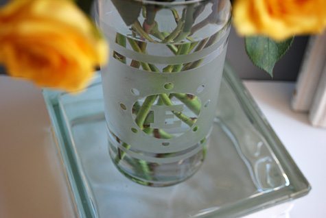 Créditos:http://www.merrimentdesign.com/how-to-etch-a-glass-vase-and-free-monogrammed-diy-glass-etching-template.php