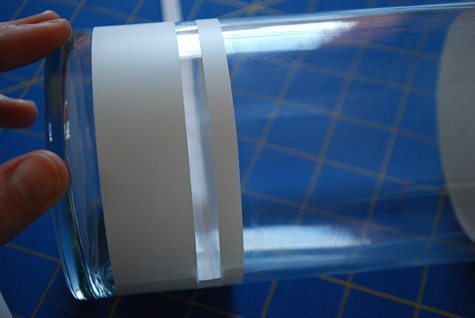 Agora, fixe o círculo de papel contact com a letra na posição do seu vaso de vidro que você desejar.