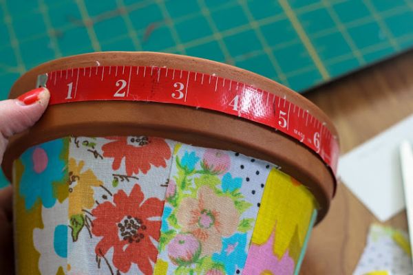 Agora, com o auxílio da fita métrica, meça o tamanho da borda superior do seu vaso.