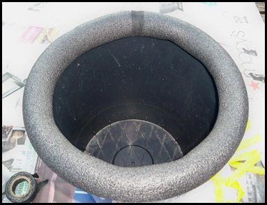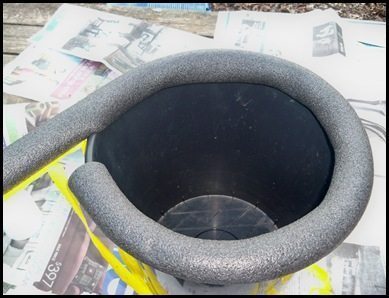 Em seguida, cole o macarrão para piscina na borda do vaso de plástico escolhido, com o auxílio da cola tudo.