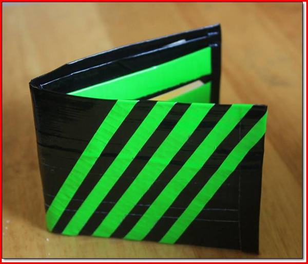Com restos de fita adesiva e papelão, faça uma carteira. Dê para crianças ou use você, caso o seu orçamento não permita comprar uma carteira nova.
