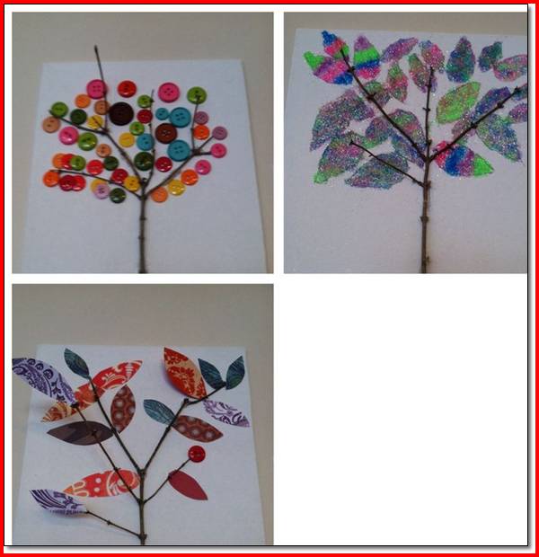 Faça quadrinhos reciclando botões, papéis, tecidos, feltros, EVAs e galhos secos que já tenha em casa.