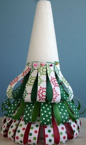 Faça isso até chegar ao topo do cone. E para enfeitar aplique por toda a árvore alguns enfeites de Natal de sua preferência. E está pronta a sua árvore de Natal com papel!