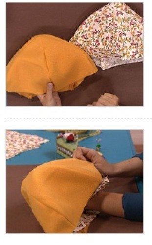 - Em seguida coloque o forro por dentro e costure.