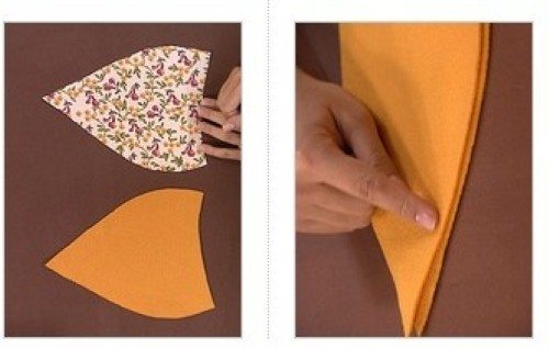 - Faça um molde no papel e em seguida corte cinco pedaços dele no tecido e cinco pedaços no tecido do forro.