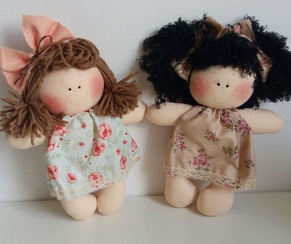 Você pode usar retalhos de tecidos que já possua em casa para criar as suas bonecas de tecidos, caso precise de poucas peças. A partir de um único molde você pode fazer várias bonecas e até mesmo bonecos, apenas mudando roupinhas, cabelo e acessórios e complementos.