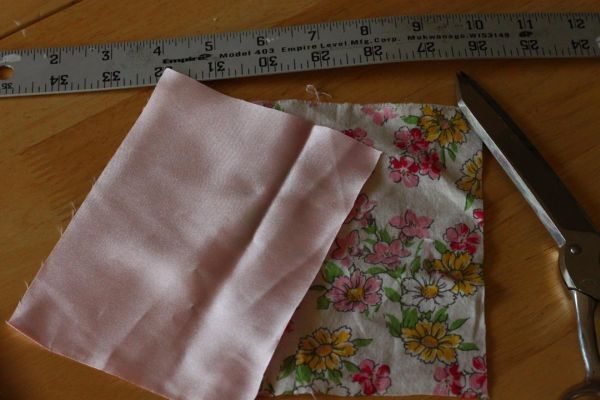 Comece cortando dois retângulos nos tecidos escolhidos, com o tamanho que você desejar.
