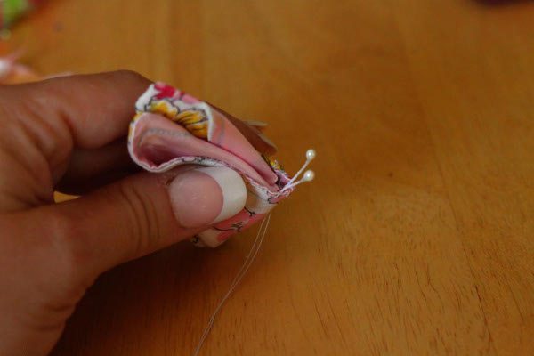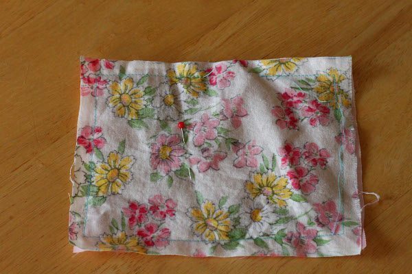 Em seguida, posicione uma parte do trabalho sobre a outra, com os lados do direito dos tecidos juntos, para dentro, e costure ao redor, mas deixando uma abertura.