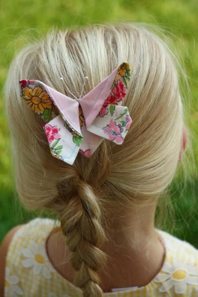 Agora, para finalizar a sua peça, faça alguns pontos para prender as partes de sua borboleta. E está pronto! Se você quiser, pode usar esta borboleta como enfeite de cabelo.