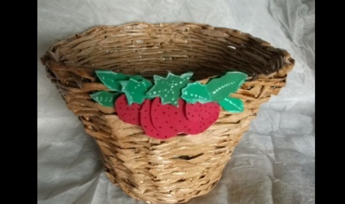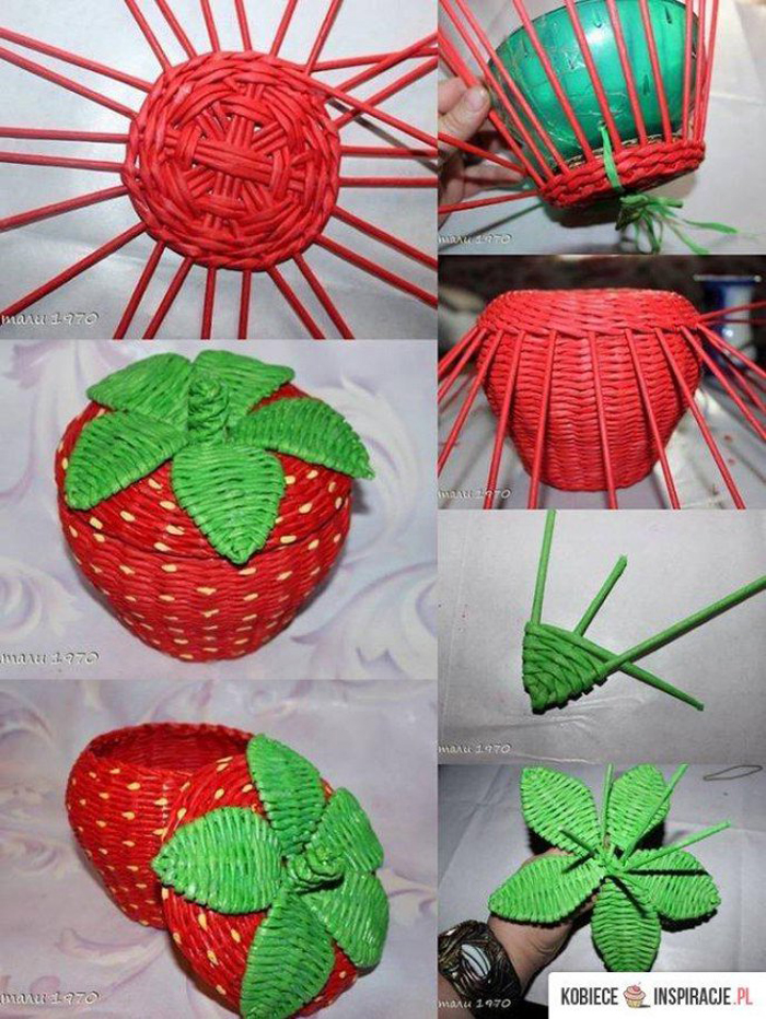 Você pode até fazer um cesto de jornal em formato de morango, pintando antes os canudos de jornal.