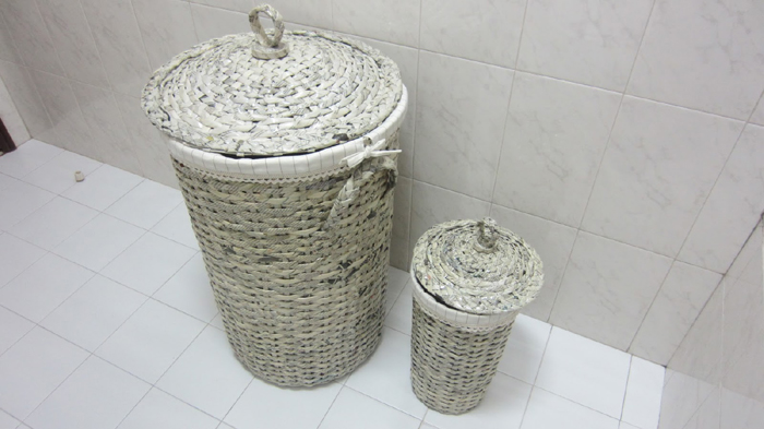 O processo de como fazer cesto de roupa de jornal é o mesmo, basta fazer a peça com um tamanho maior. E o seu cesto de jornal para banheiro pode ter uma tampa.