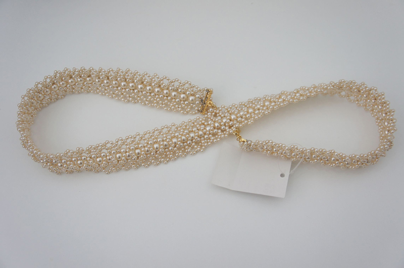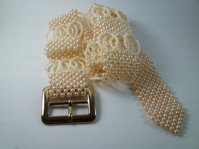 O cinto de pérola entrelaçado fica lindo e você pode fazê-lo com várias espessuras. O modelo mais simples é fácil de ser conseguido, basta você colocar uma pérola por um fio, dar um nó e começar a cruzar as pontas do fio por entre as pérolas e outras pedrarias que você queira incorporar ao seu cinto.