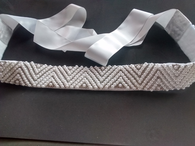 A praticidade pode estar presente no momento de confeccionar o seu cinto se você usar a fita para amarrar a parte de pérolas ao redor da sua cintura.