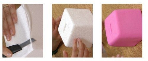 - Arredonde as bordas da caixa de isopor com a ajuda do estilete.