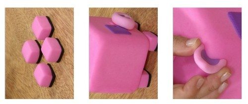 - Faça quadrados com a massa de biscuit em outra cor e com a ajuda da esteca faça traços como se fosse uma costura em tecido.