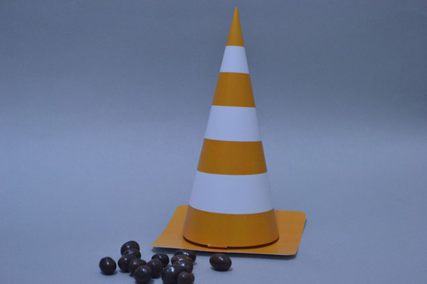 O processo de como fazer cone de trânsito de papel pode ser bem fácil se você cortar o molde em um papel, colar as extremidades e colar o cone sobre um quadrado de papel.